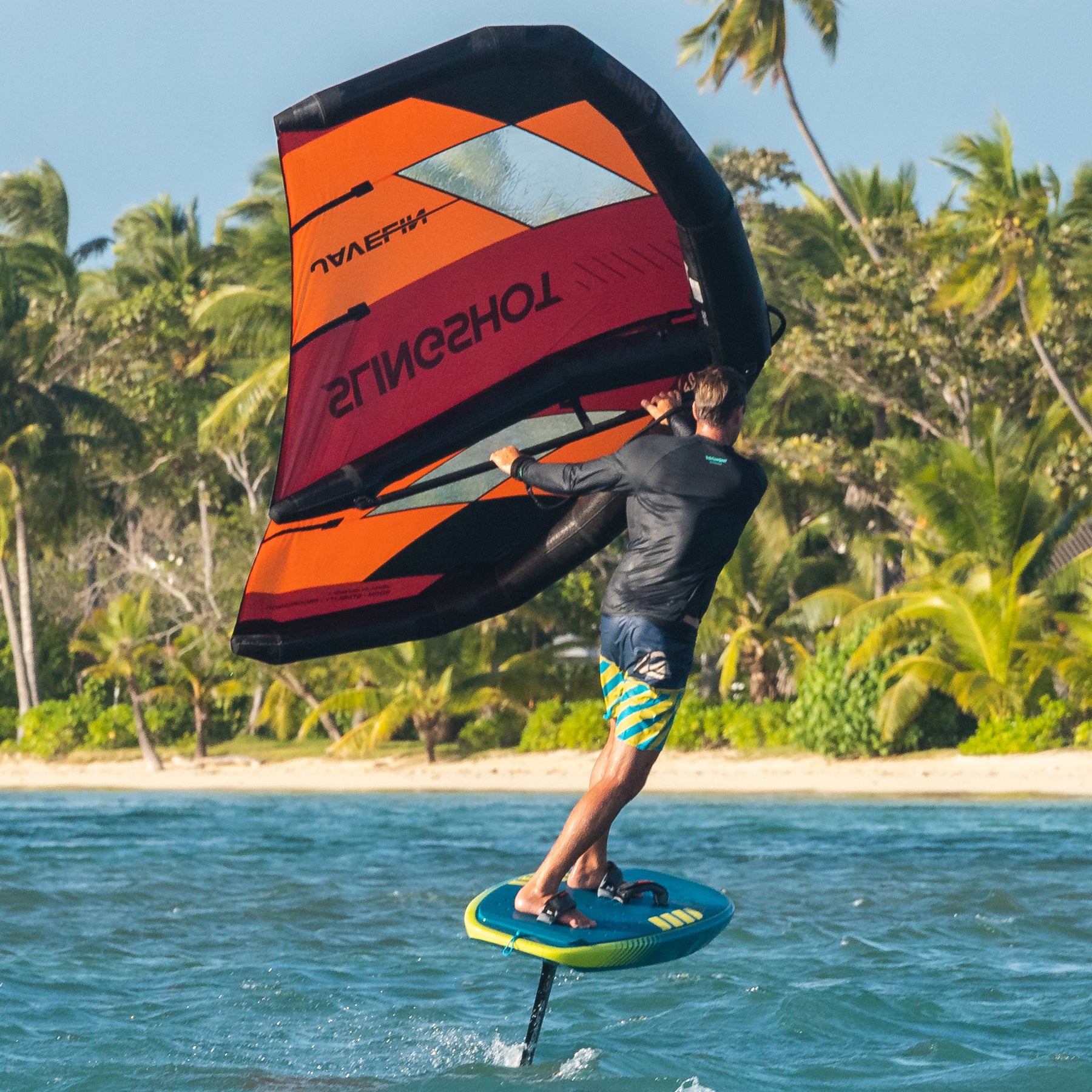 aider les wingers à progresser et à enseigner à leurs amis. Il est doté de rails doux, d'un rocker à fond plat pour une fixation rapide sur le foil, et d'une largeur suffisante pour être stable même dans les eaux agitées.